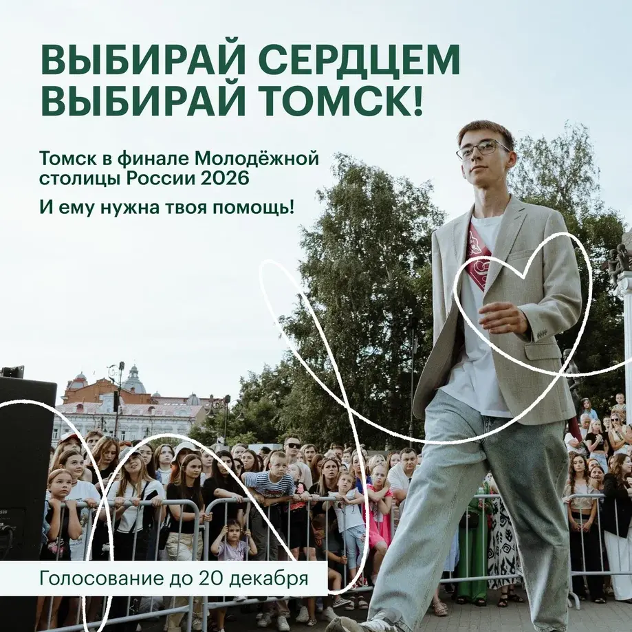 Голосование проходит с 1 по 20 декабря 2025 г. на Едином портале государственных и муниципальных услуг. Поддержать Томск можно перейдя по ссылке https://pos.gosuslugi.ru/lkp/polls/558552/